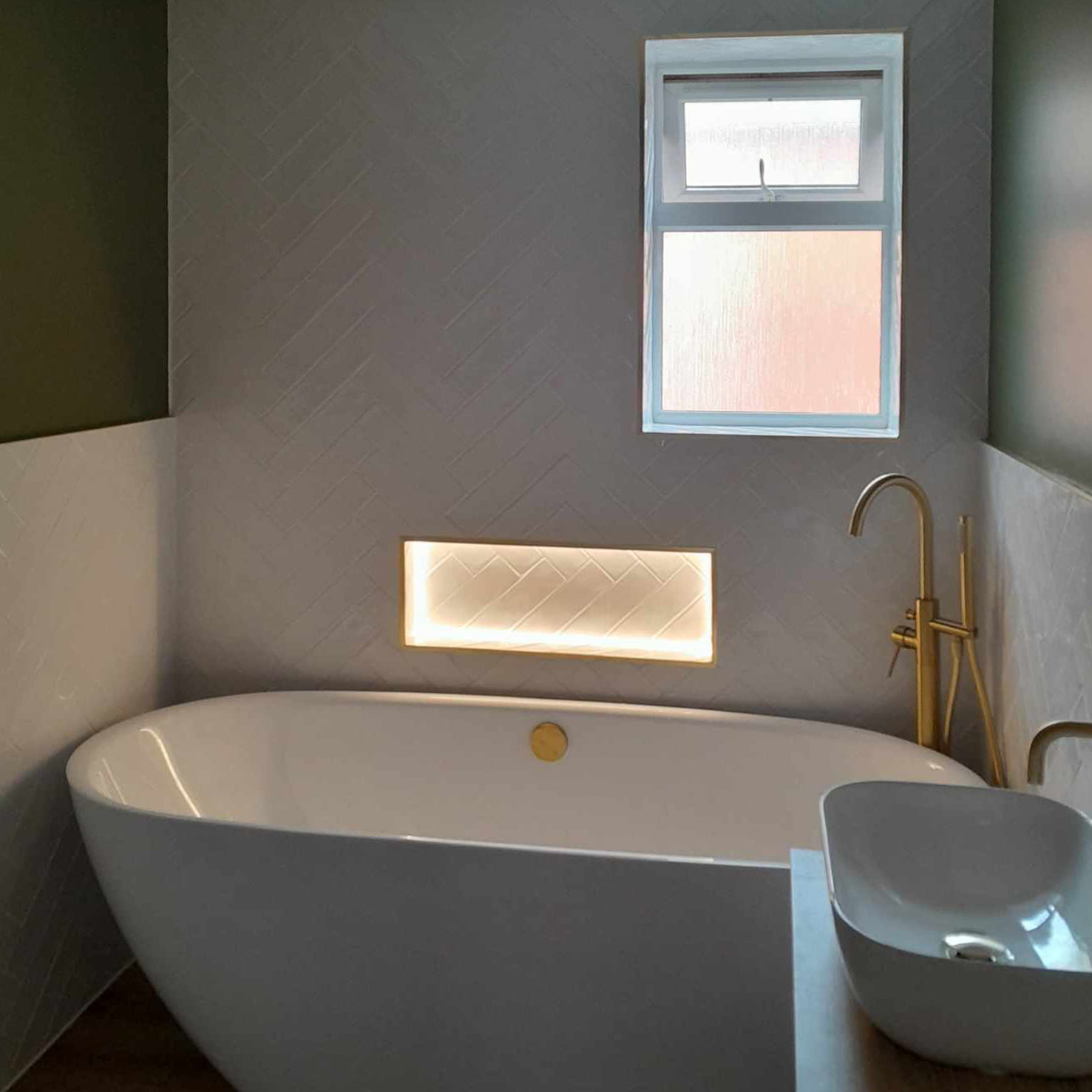 Transforming this bathroom into a sleek and modern space, we installed stunning white herringbone tiles, creating a timeless and stylish finish. The carefully aligned pattern adds depth and elegance, making the bathroom feel both spacious and contemporary. Our attention to detail ensured clean grout lines and precise cuts, enhancing the seamless design. The durable, water-resistant tiles are easy to maintain, blending practicality with aesthetic appeal.